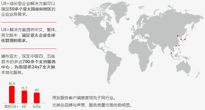 用友深耕中国及亚太市场25年,将中国企业的经营智慧及全球先进管理思想和技术内化于U8+产品及方案,全面满足您在不同的发展阶段的管理诉求,追求实效,快速应用,通过数据驱动实现深度价值创造。